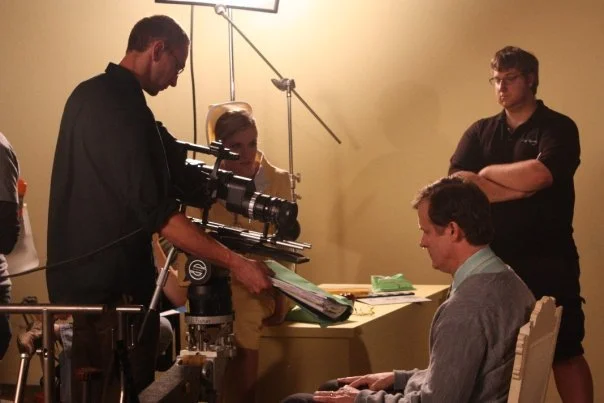 Setting up a shot from the film Bob and Edgar.